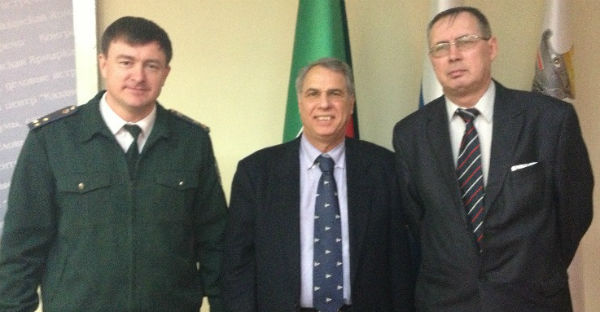 Da sinistra, Ramil Nizamov, vice ministro dell'Ambiente della Repubblica del Tatarstan, Francesco Signoriello, amministratore unico World Area Holding srl e Ildar Shaihiev, capo dipartimento di Ecologia dell'Università Statale Tecnologica di Ricerca di Kazan