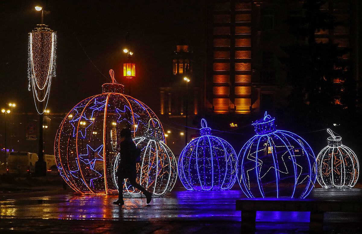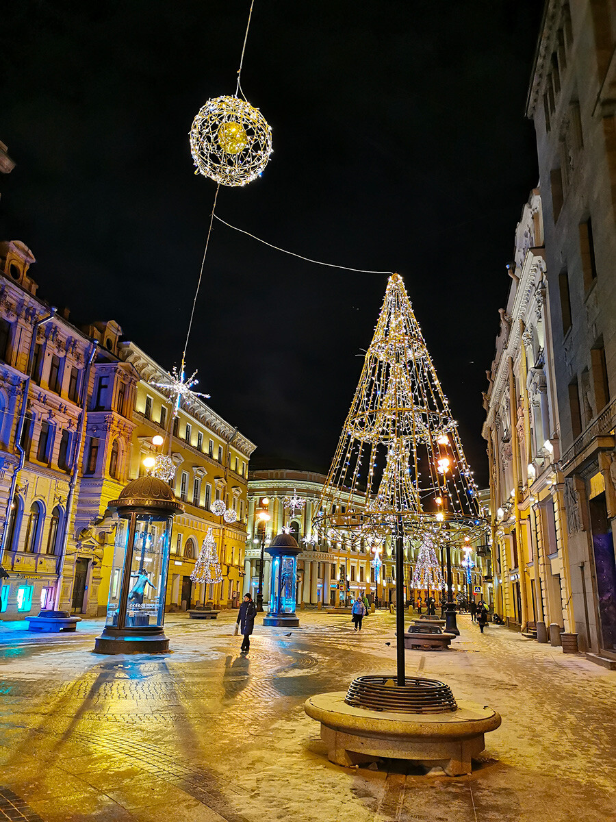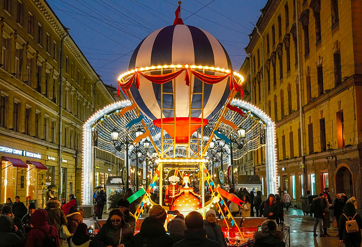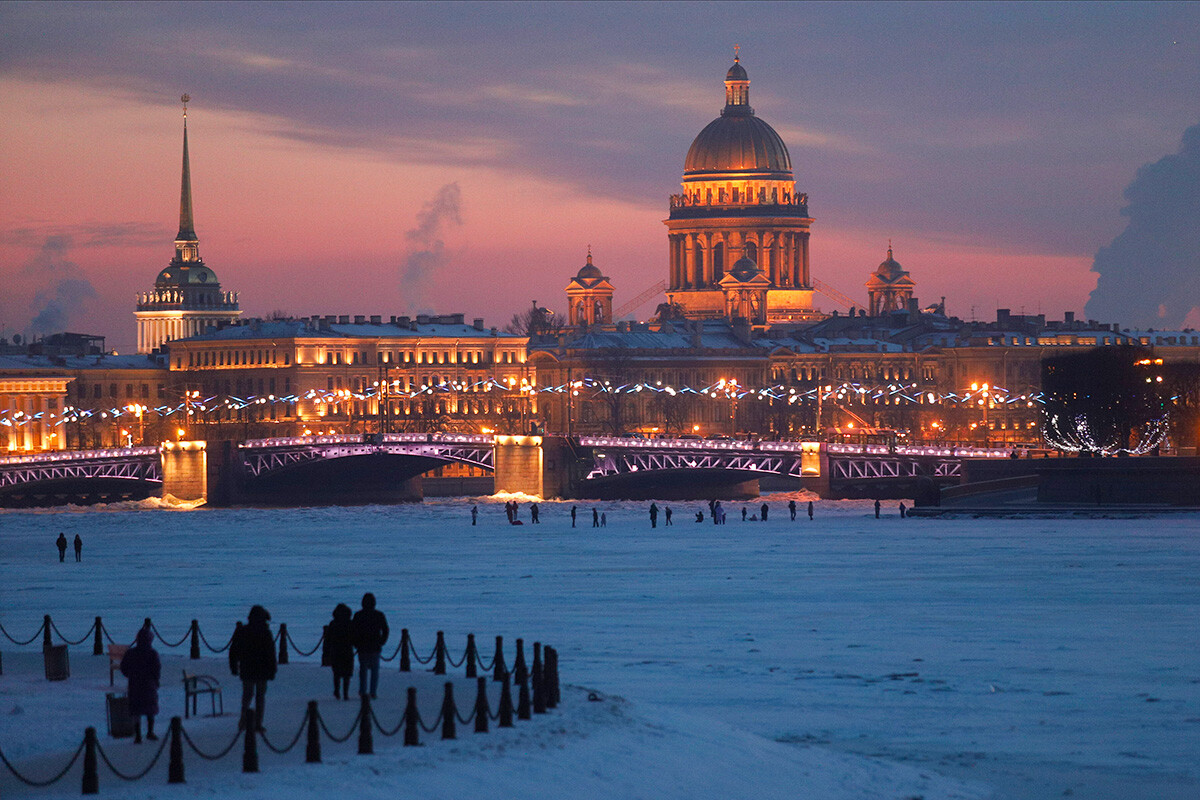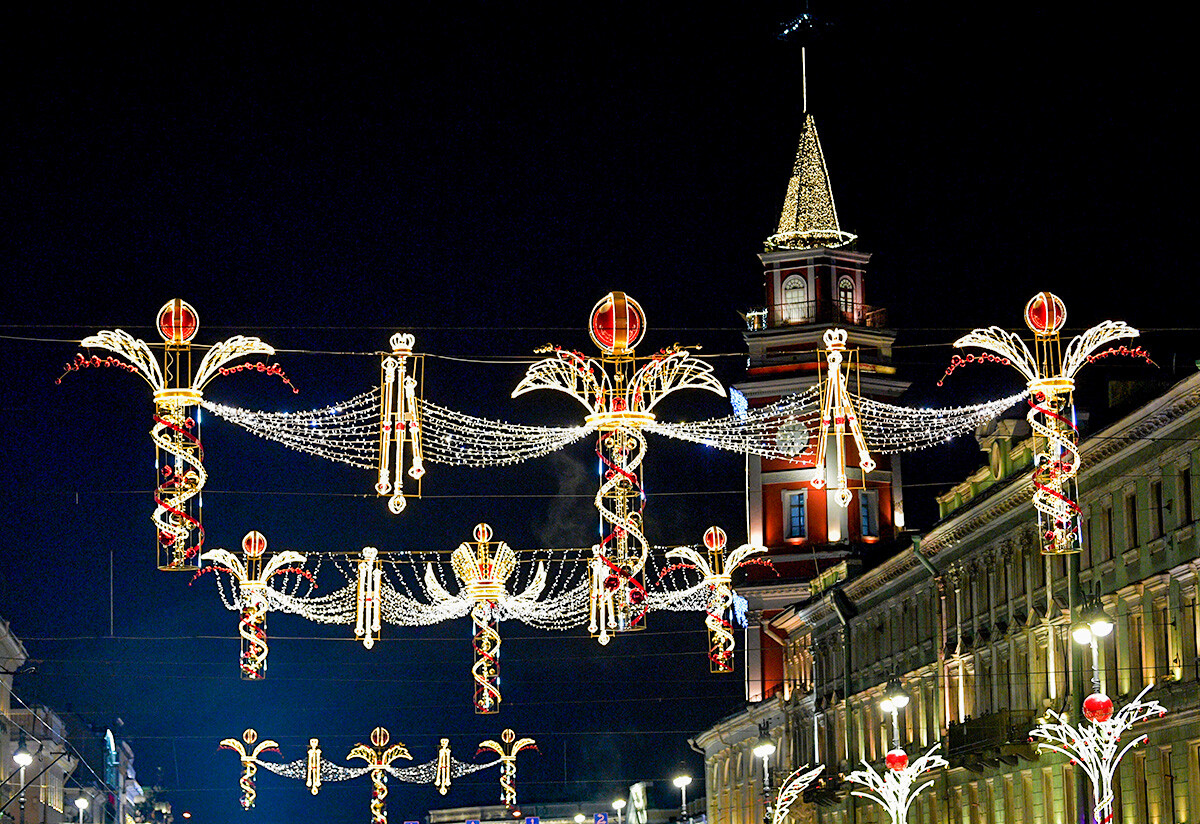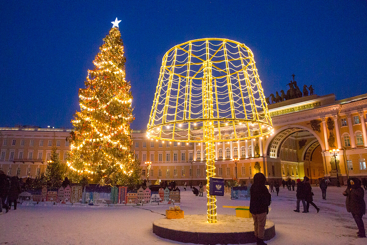 L'inverno a San Pietroburgo è solitamente molto nevoso, ma per le celebrazioni di Capodanno le strade si vestono a festa. Il 20 dicembre l'albero di Natale nella Piazza del Palazzo è stato illuminato con migliaia di lampadine colorate.