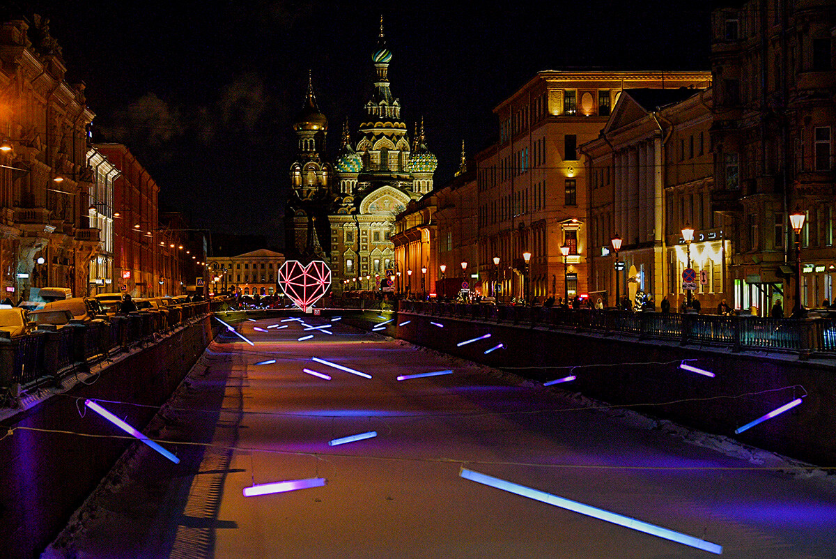Sul canale Griboedov si intravedono bellissime installazioni luminose.